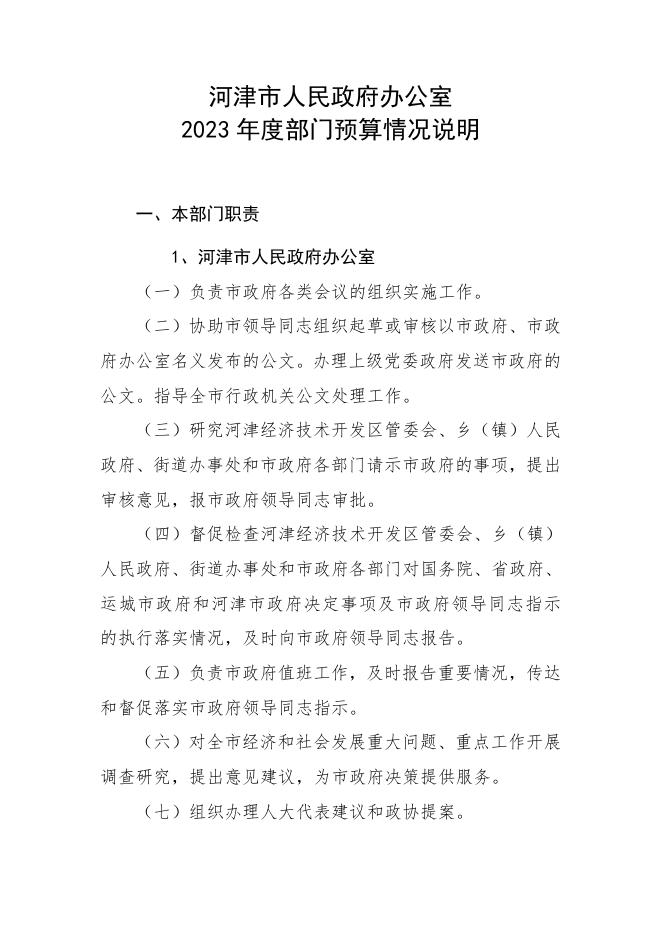 河津市人民政府办公室2023年部门预算公开说明.doc