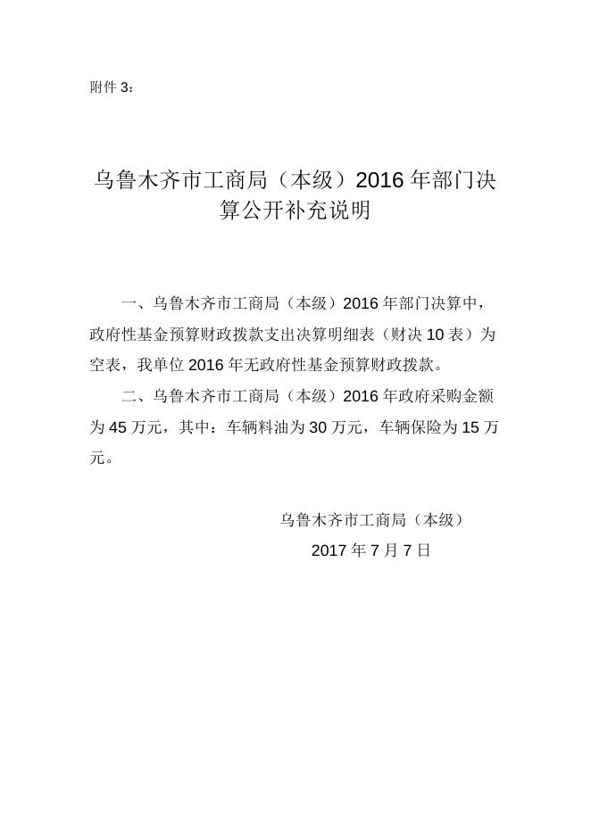 乌鲁木齐市工商局(本级)2016年部门决算公开补充说明.docx