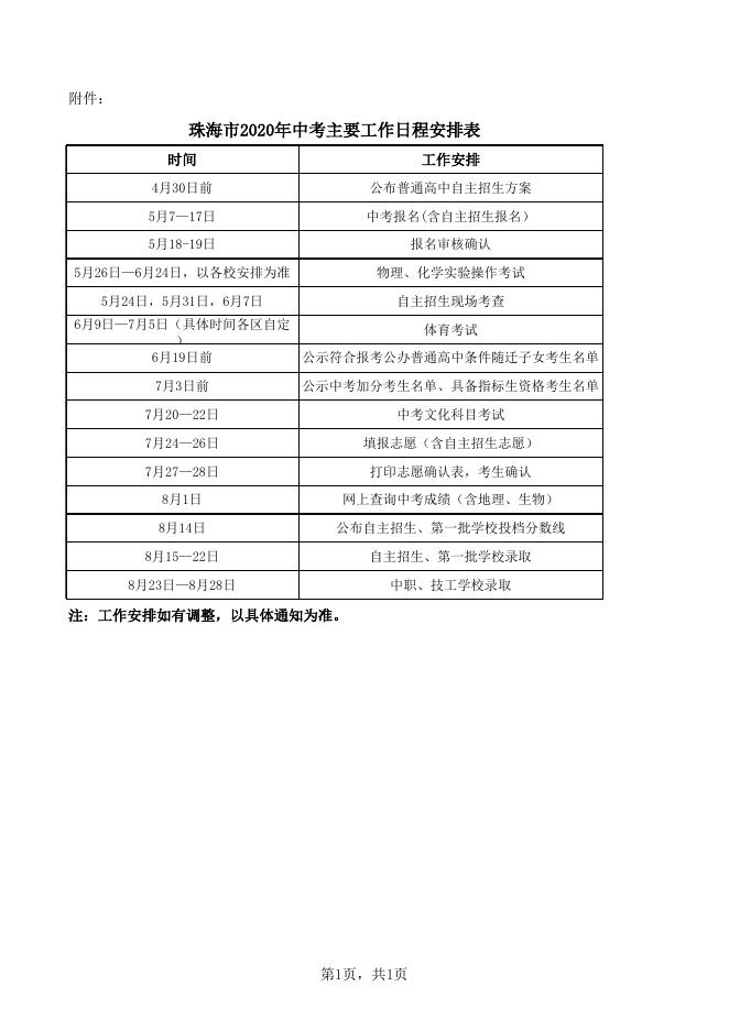 珠海市2020年中考主要工作日程安排表 .xls