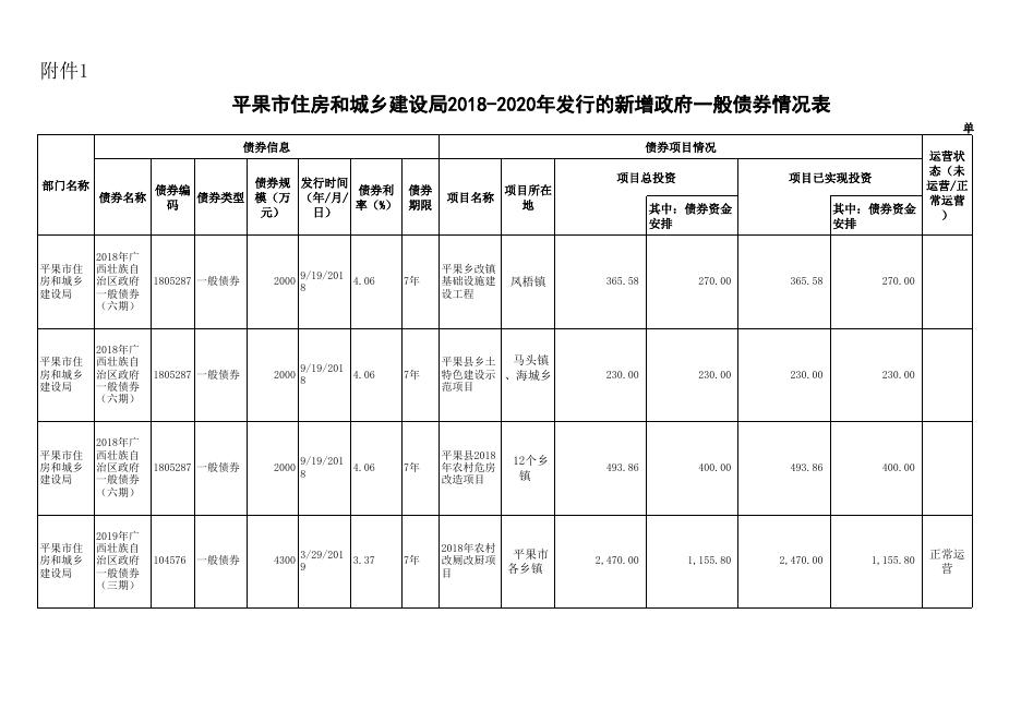 2018-2020年发行的新增政府一般债券情况表(平果市住房和城乡建设局).xlsx