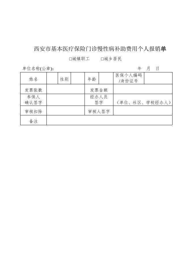 西安市基本医疗保险门诊慢性病补助费用个人报销单.doc