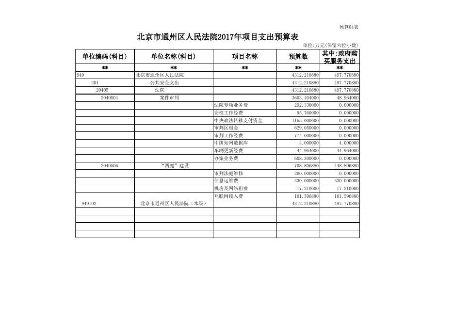 附件4:北京市通州区人民法院2017年项目支出预算表.xls