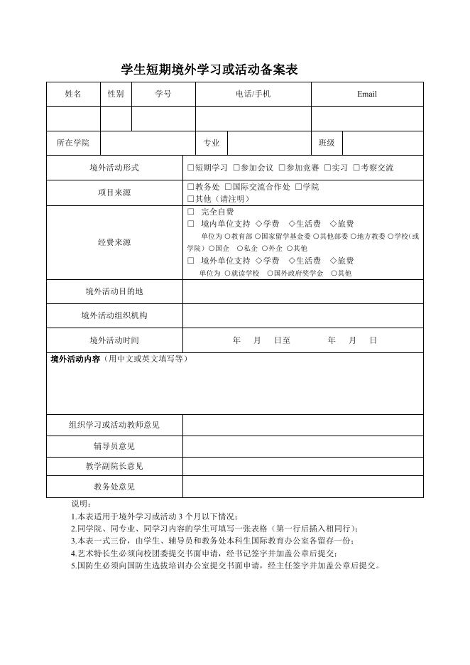 附件2:北京理工大学学生短期境外学习或活动备案表.doc