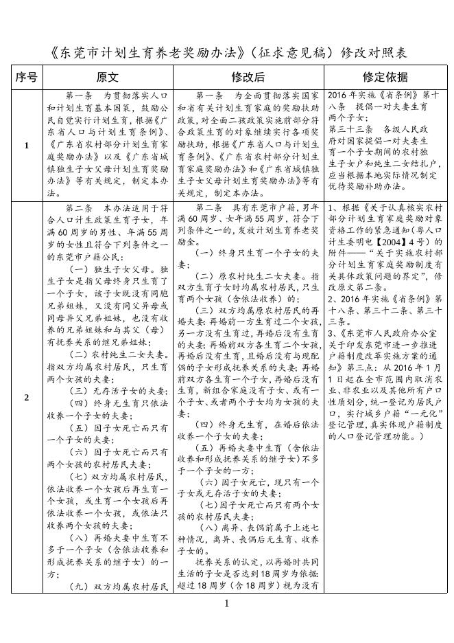 《东莞市计划生育养老奖励办法》修改情况对照表.doc