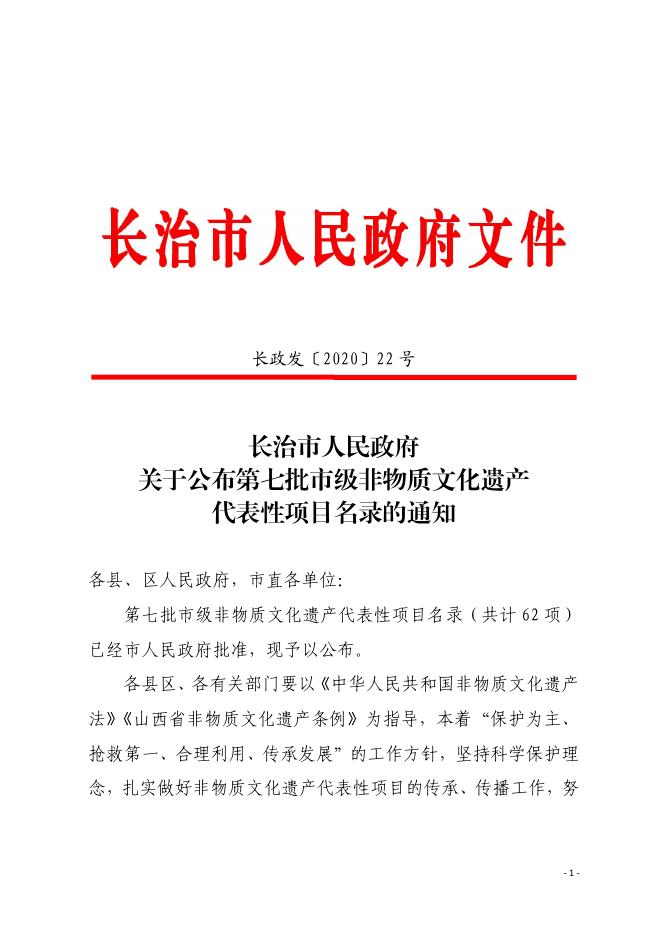 长治市人民政府关于公布第七批市级非物质文化遗产代表性项目名录的通知.PDF.pdf