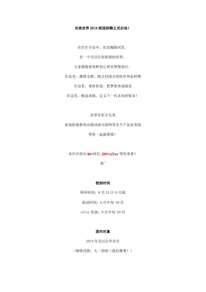 完美世界2019校园招聘启动啦!- 招聘简章.docx