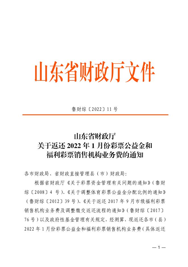 鲁财综【2022】11号 2022年1月份彩票公益金及福彩业务费.pdf