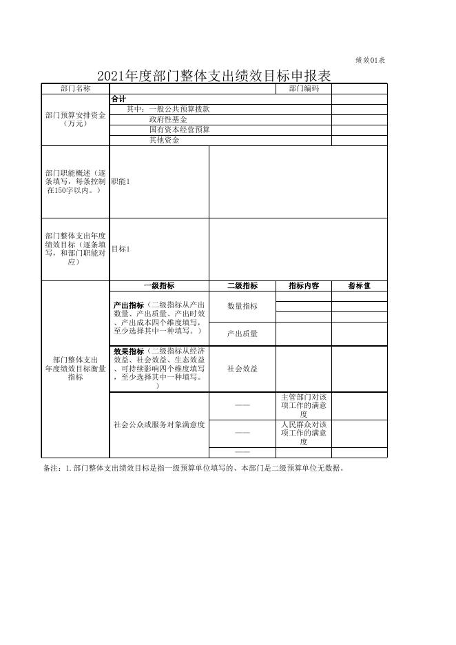 附件12: 部门整体支出预算绩效目标01表.xlsx