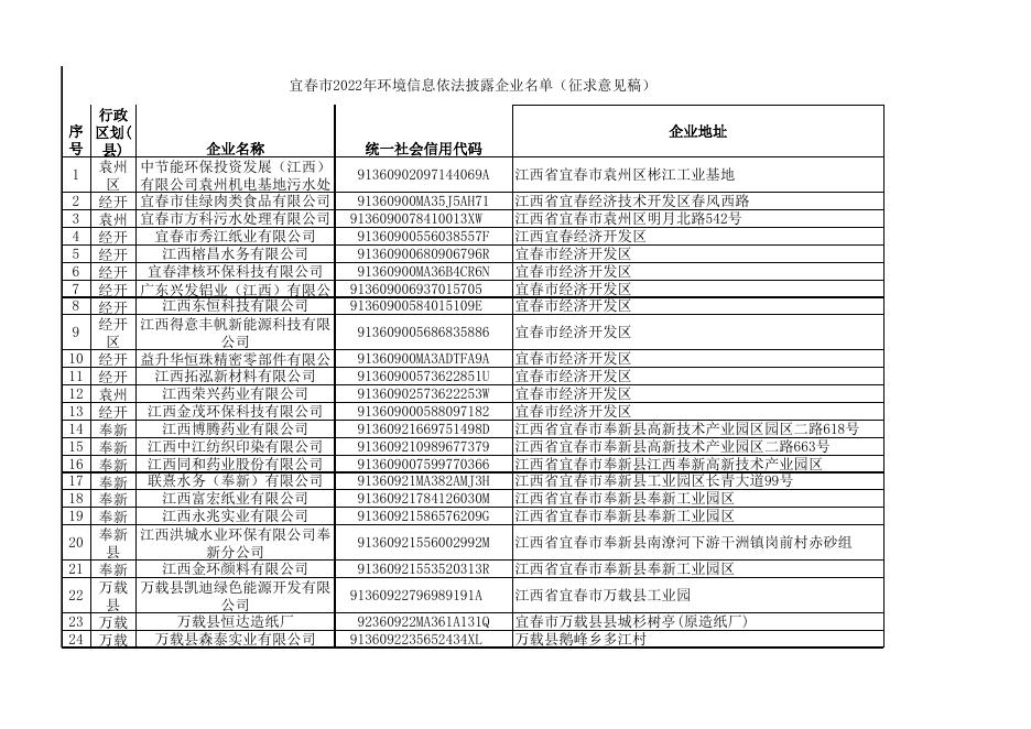 草案全文—宜春市2022年环境信息依法披露企业名单(征求意见稿).xlsx