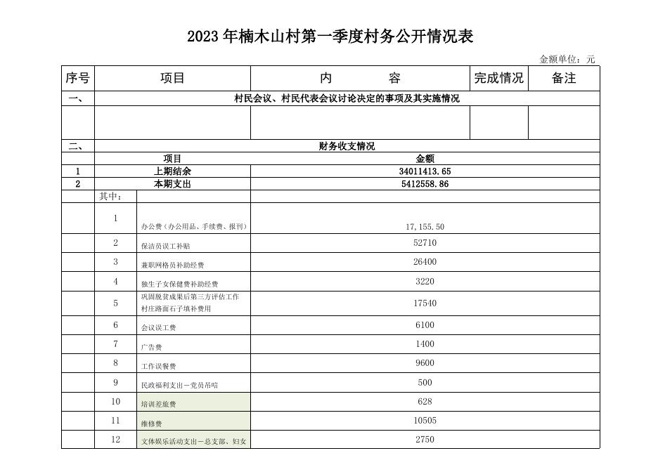 东兴镇楠木山村2023年第一季度党务、村务公开.doc
