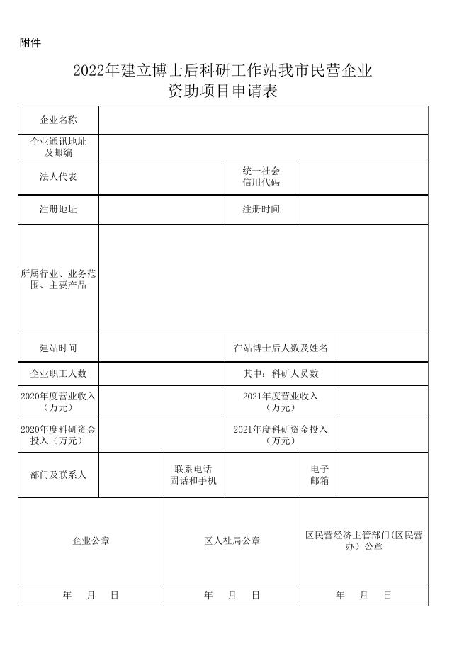 附件:2022年建立博士后科研工作站我市民营企业资助项目申请表.xlsx