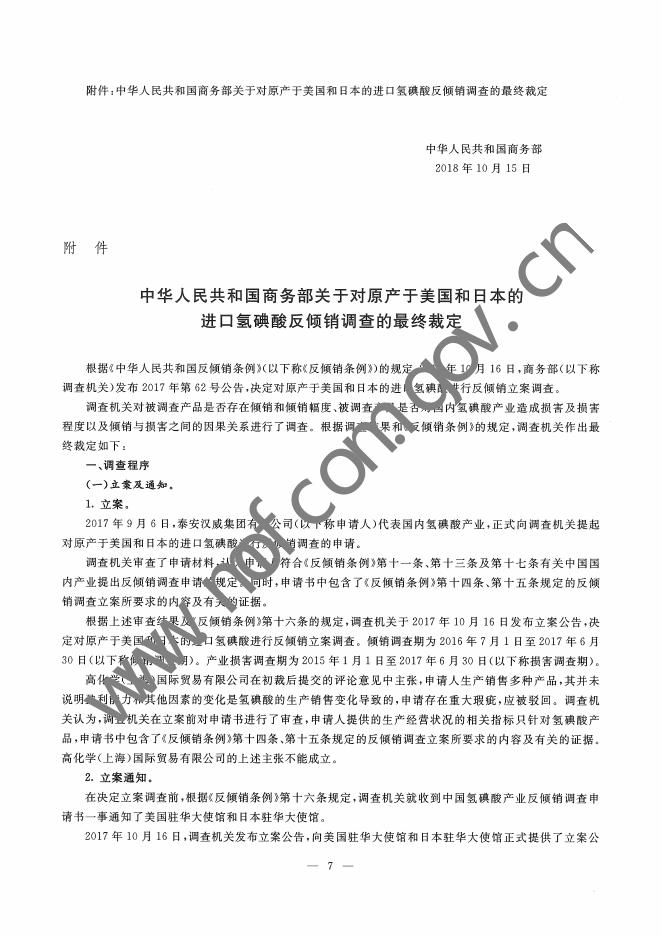 中华人民共和国商务部关于对原产于美国和日本的进口氢碘酸反倾销调查的最终裁定.pdf