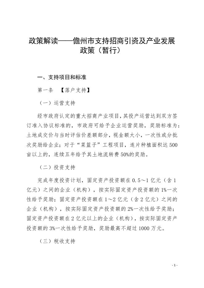 政策解读——儋州市支持招商引资及产业发展政策(暂行).docx