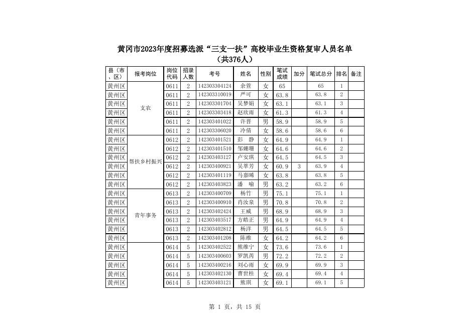 附件1:黄冈市2023年度招募选派“三支一扶”高校毕业生资格复审人员名单.xlsx
