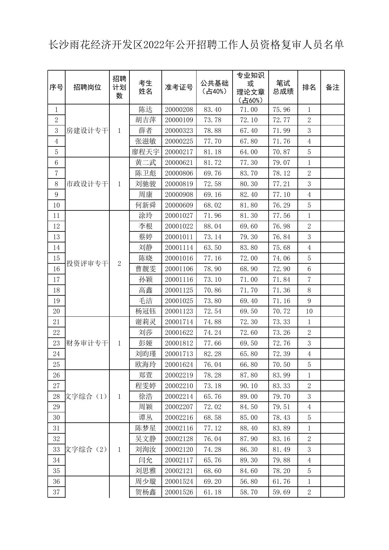 附件1:长沙雨花经济开发区2022年公开招聘工作人员资格复审人员名单.xls