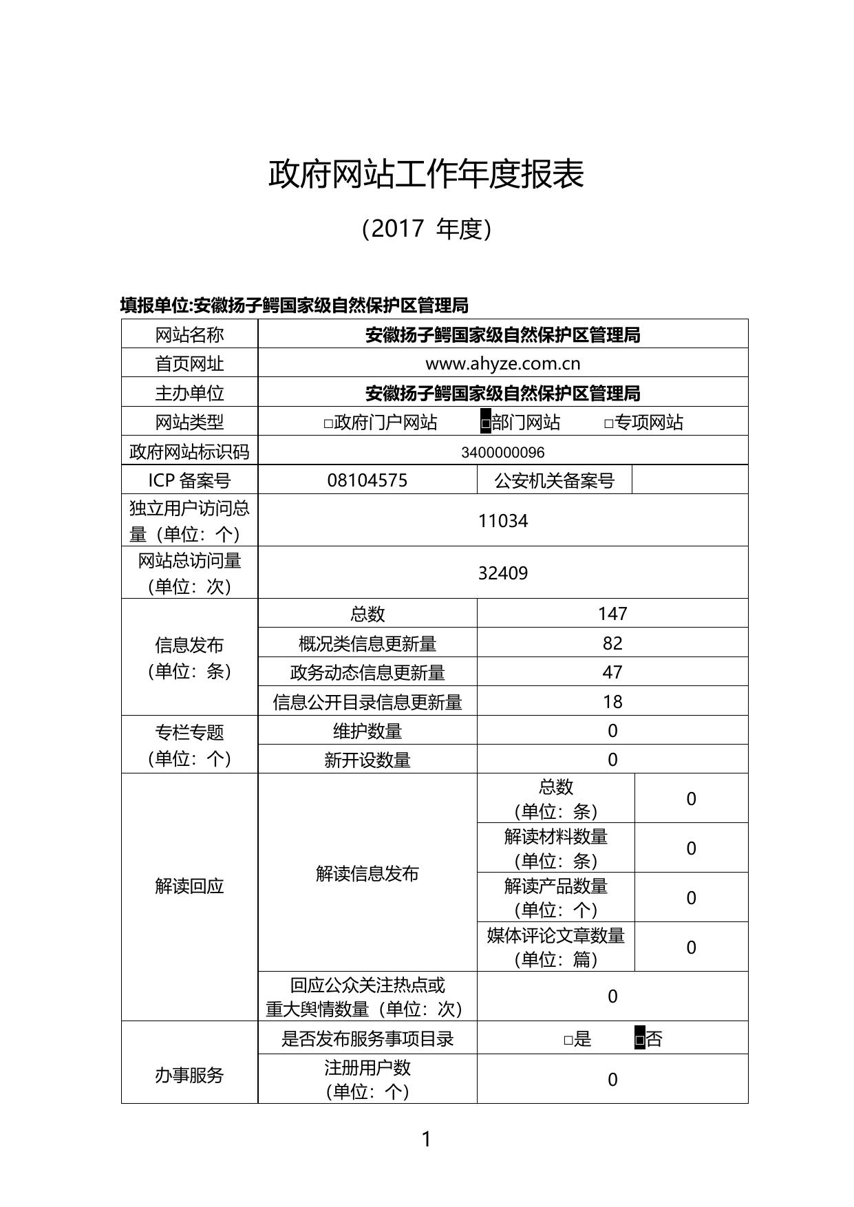 原安徽扬子鳄国家自然保护区网站工作年度报表(2017年度)_安徽省林业局.doc