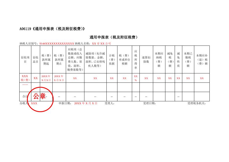 A06119《通用申报表(税及附征税费)》(填写样例).doc