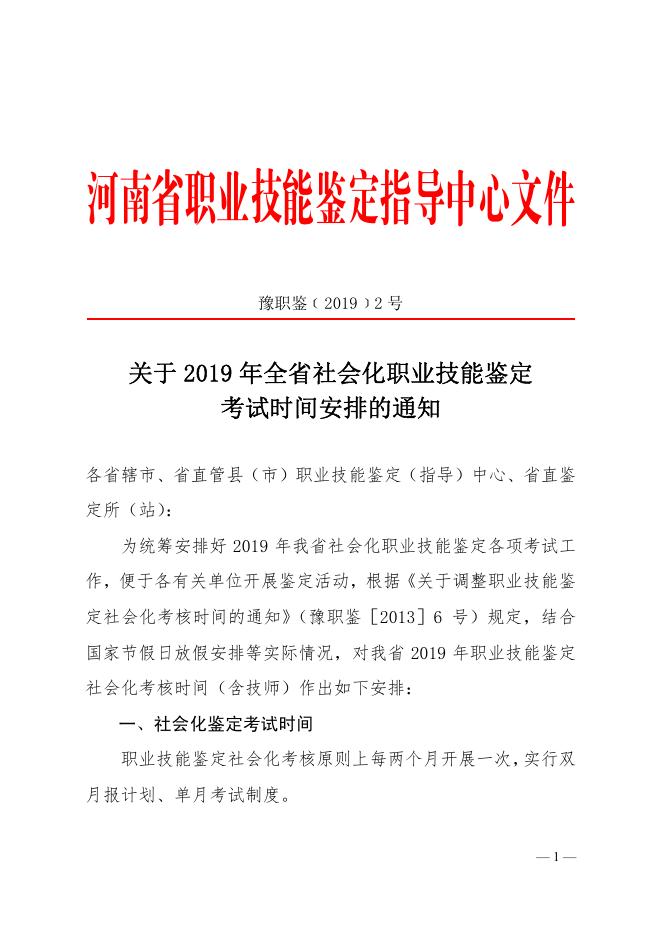 关于2019年全省社会化职业技能鉴定考试时间安排的通知(2).pdf