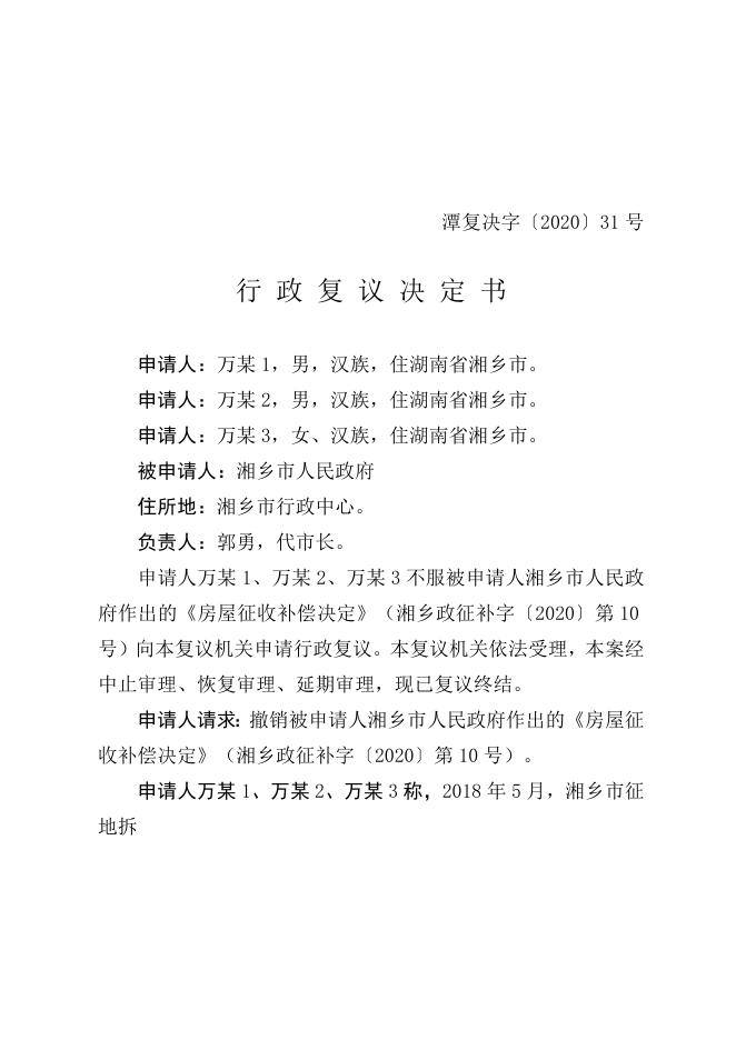 行政复议决定书(潭复决字〔2020〕31号).doc