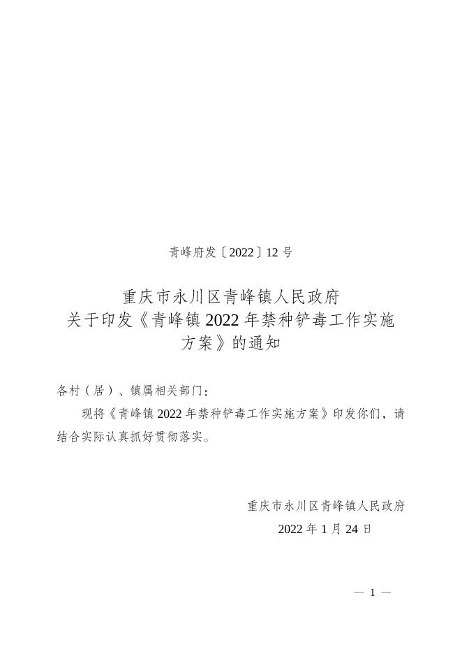 12号关于印发《青峰镇2022年禁种铲毒工作实施方案》的通知.docx