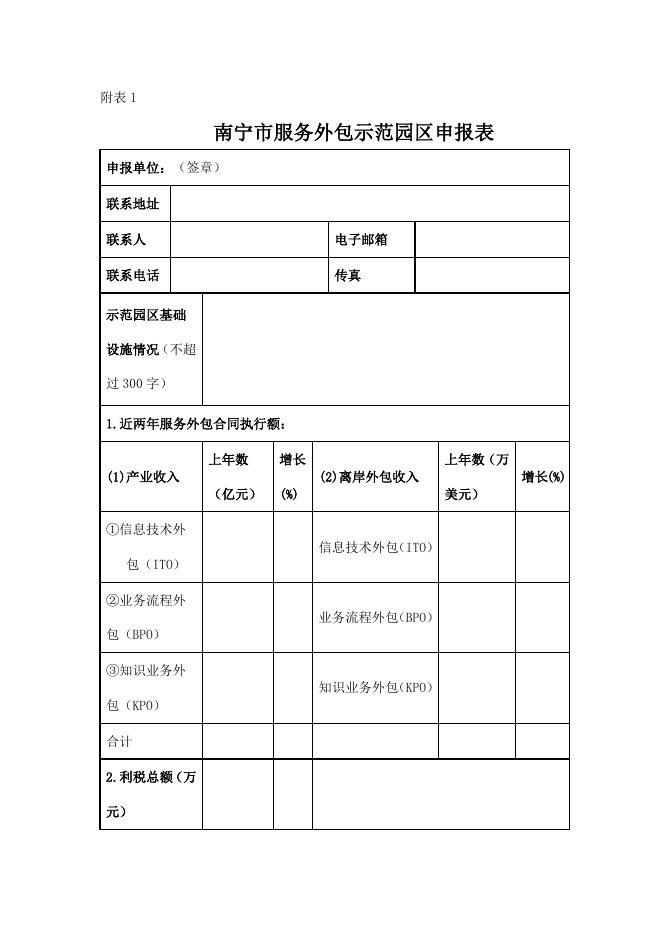 南宁市服务外包示范园区申请表、申报园区服务外包企业一览表.doc
