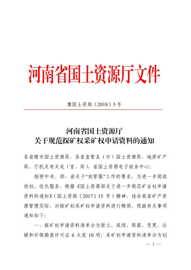 河南省国土资源厅关于规范探矿权采矿权申请资料的通知.pdf