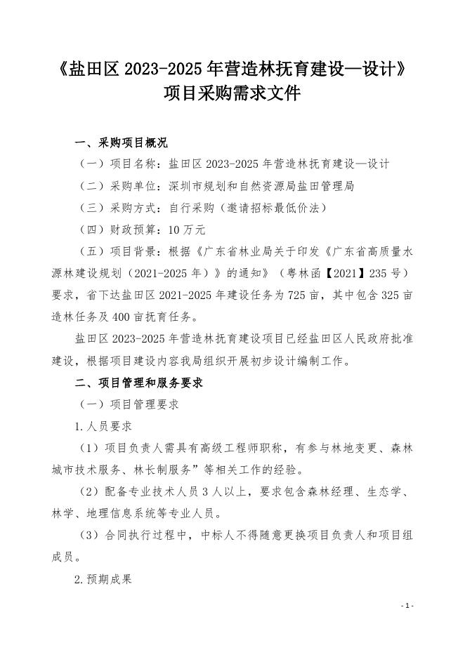 《盐田区2023-2025年营造林抚育建设—设计》采购需求文件.doc