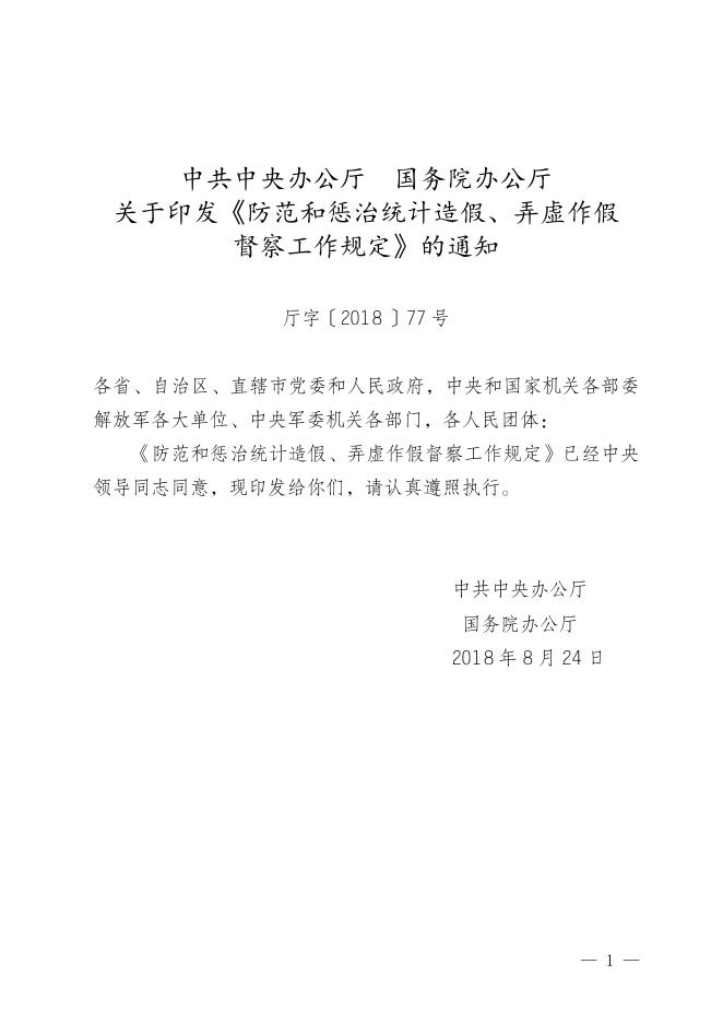 厅字〔2018 〕77号 《防范和惩治统计造假弄虚作假督察工作规定》.doc