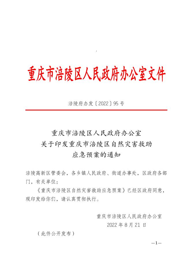 重庆市涪陵区人民政府办公室关于印发重庆市涪陵区自然灾害救助应急预案的通知.doc