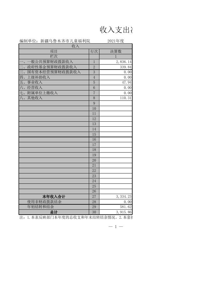 乌鲁木齐市儿童福利院2021年度部门决算公开表.xls