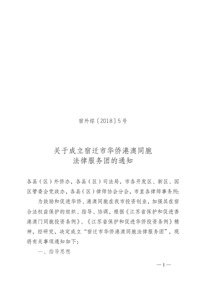 关于成立宿迁市华侨港澳同胞法律服务团的通知.doc.docx