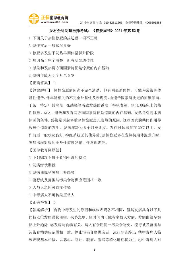 乡村全科助理医师考试:《答疑周刊》2021年第52期.doc