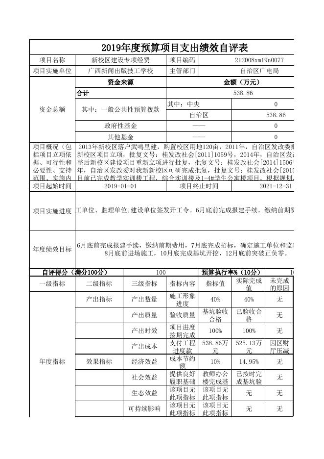 附件9:新校区建设专项经费_绩效自评表.xls