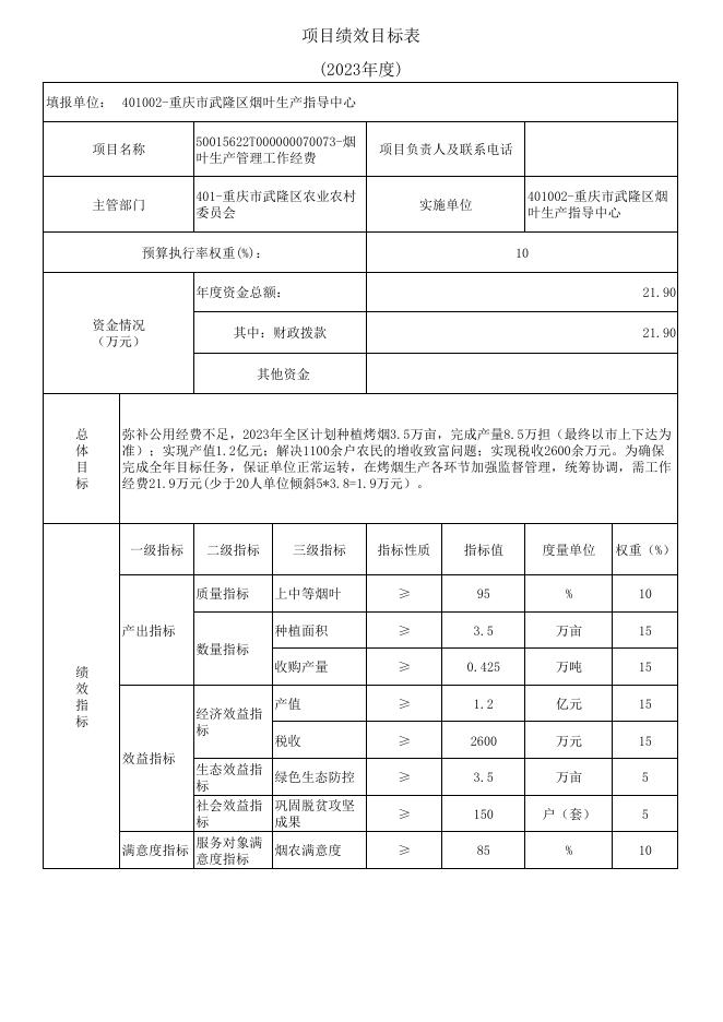 重庆市武隆区烟叶生产指导中心2023年项目绩效目标表.pdf