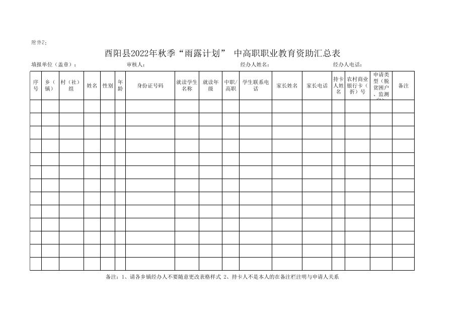 附件2酉阳县2022年秋季“雨露计划” 中高职职业教育资助汇总表(1).xls