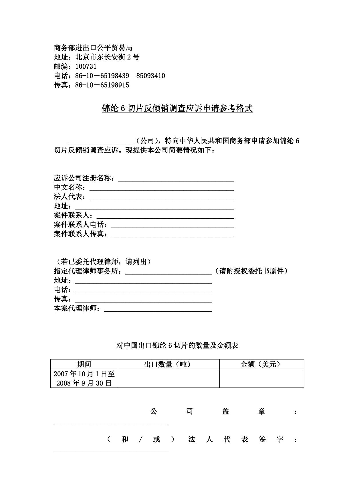 反倾销调查应诉登记表.doc