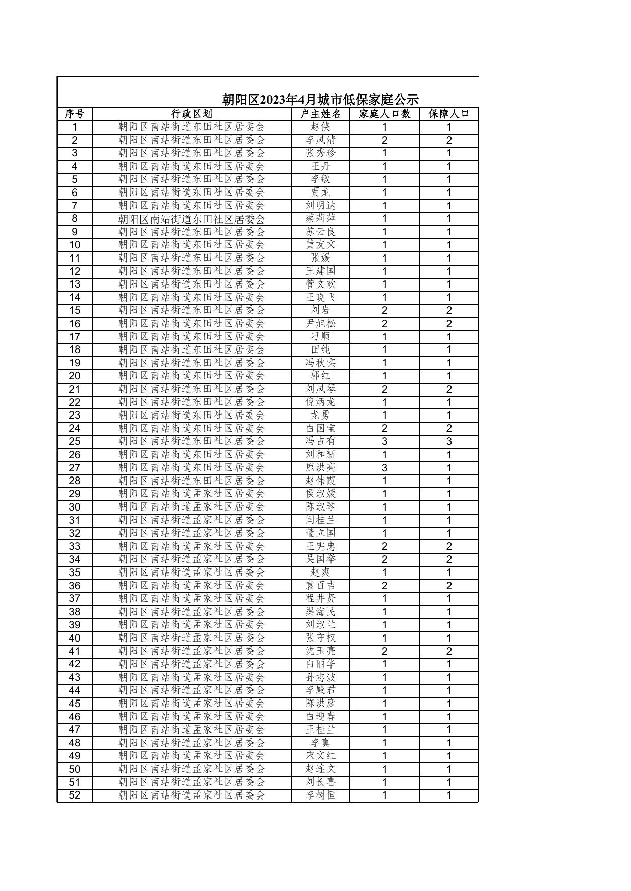>>朝阳区2023年4月城市低保家庭公示.xls