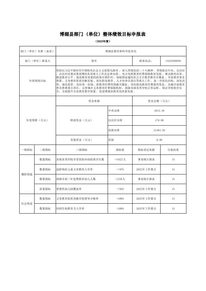 23、博湖县教育和科技局2023年度部门整体绩效目标申报表.pdf