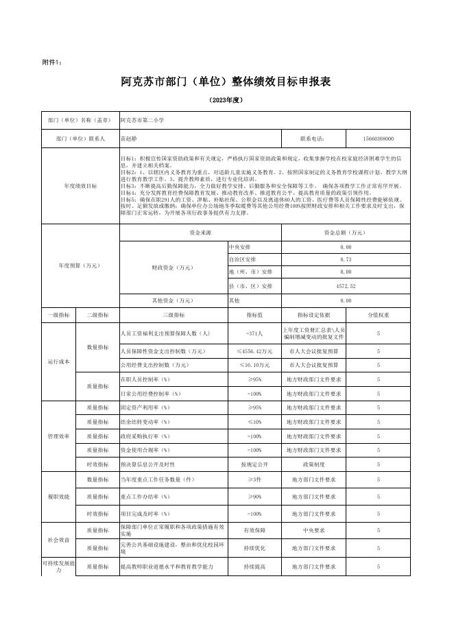 60、阿克苏地区阿克苏市第二小学2023年部门单位整体支出绩效目标表.pdf