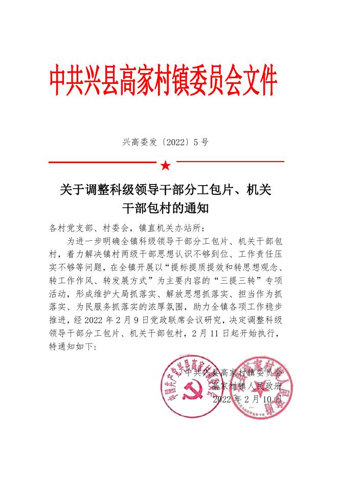 关于调整科级领导干部分工包片、机关 干部包村的通知.pdf