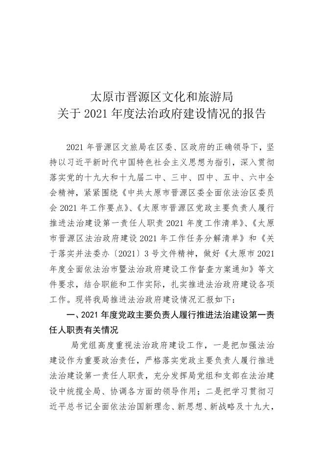 太原市晋源区文旅局关于2021年度法治政府建设情况的报告.docx