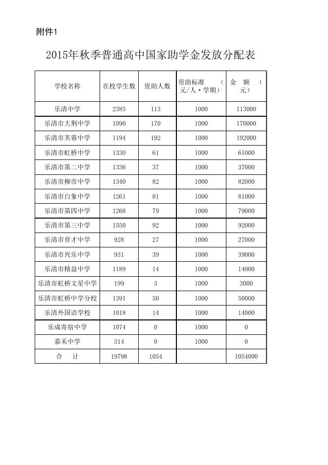 附件下载:乐教计〔2015〕42号附件2015年秋乐清市普通高中国家助学金发放名额分配表.xls