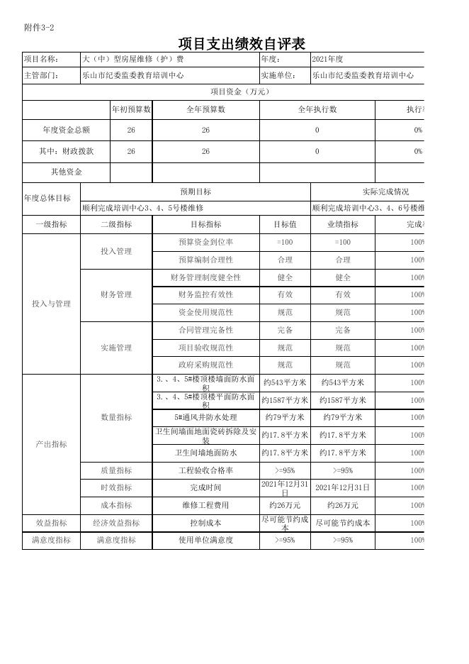 附件3.大(中)型房屋维修(护)项目支出绩效自评表.xlsx