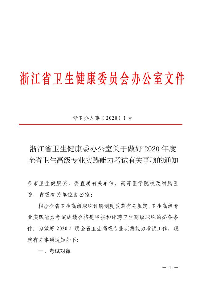 2.浙江省卫生健康委办公室关于做好 2020 年度全省卫生高级专业实践能力考试有关事项的通知.pdf