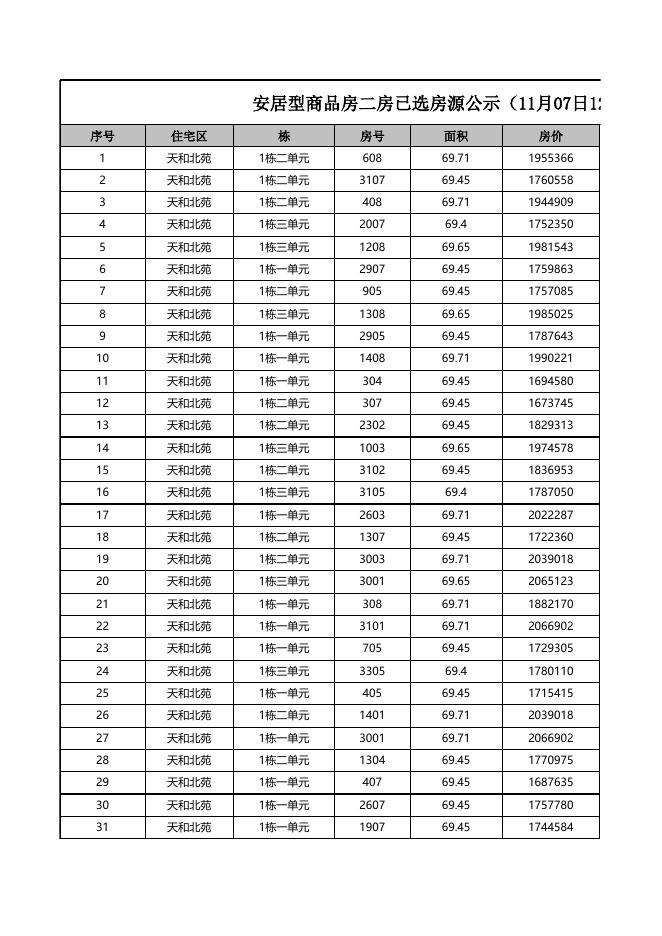 安居型商品房二房已选房源公示(11月07日12时更新).xlsx