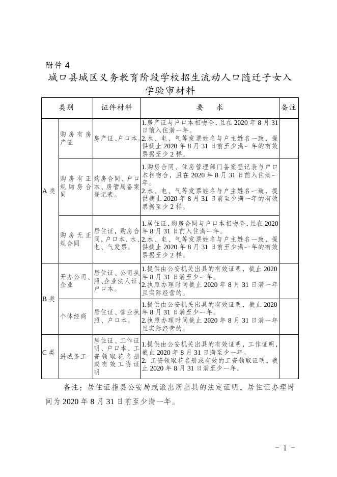 附件4-城口县城区义务教育阶段学校招生流动人口随迁子女入学验审材料.docx