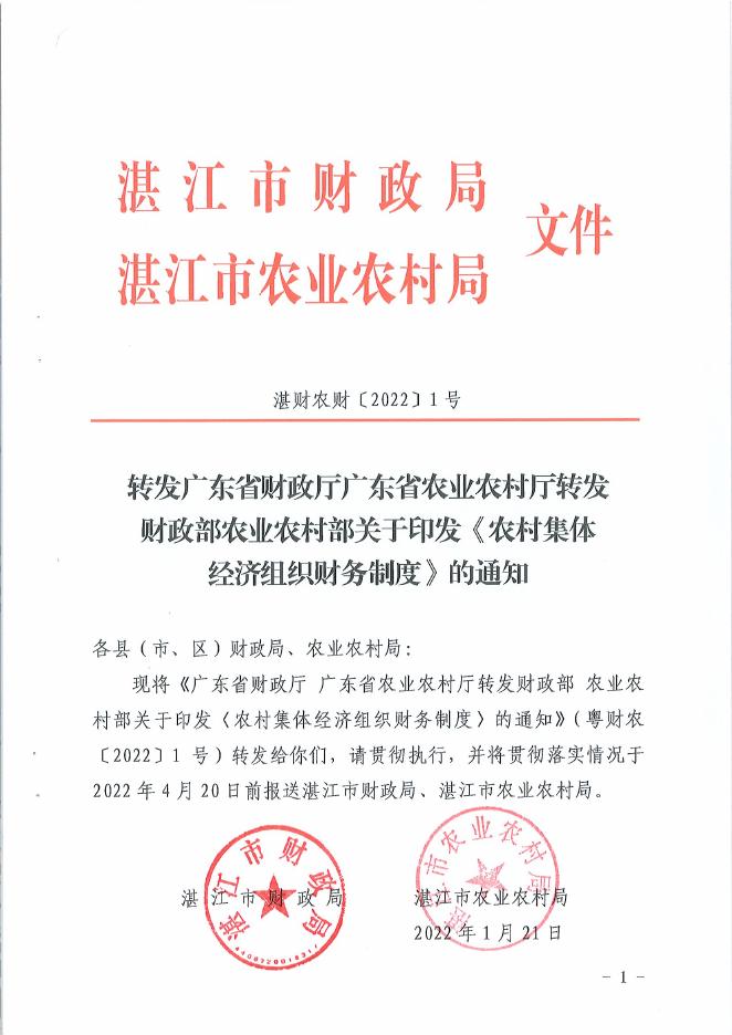 湛财农财[2022]1号转发广东省财政厅广东省农业农村厅转发财政部农业农村部关于印发《农村集体经济组织财务制度》的通知.pdf