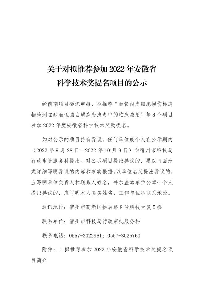 关于对拟推荐参加2022年安徽省科学技术奖提名项目的公示.docx