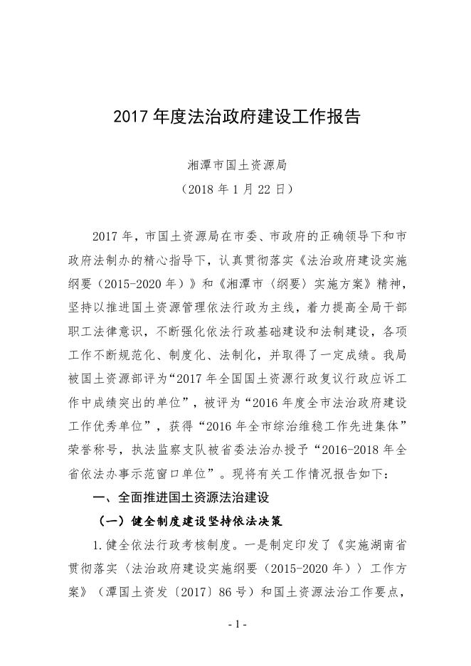 湘潭市国土资源局2017年度法治政府建设工作报告.pdf