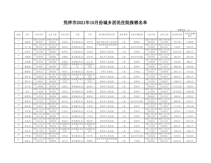 凭祥市2021年10月份城乡居民住院报销名单.xls